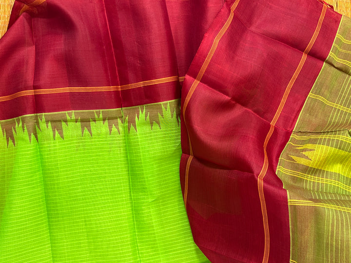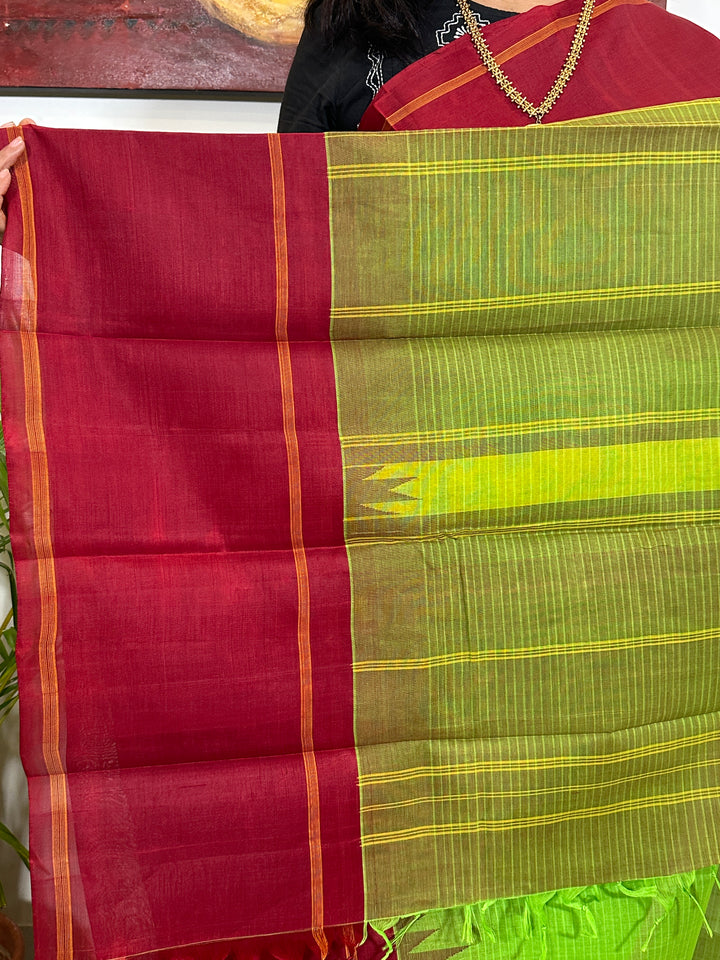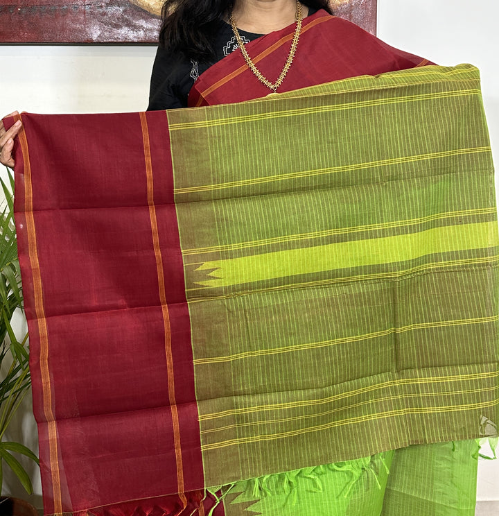 Parrot Green and Maroon Cotton Saree with Silk Saree